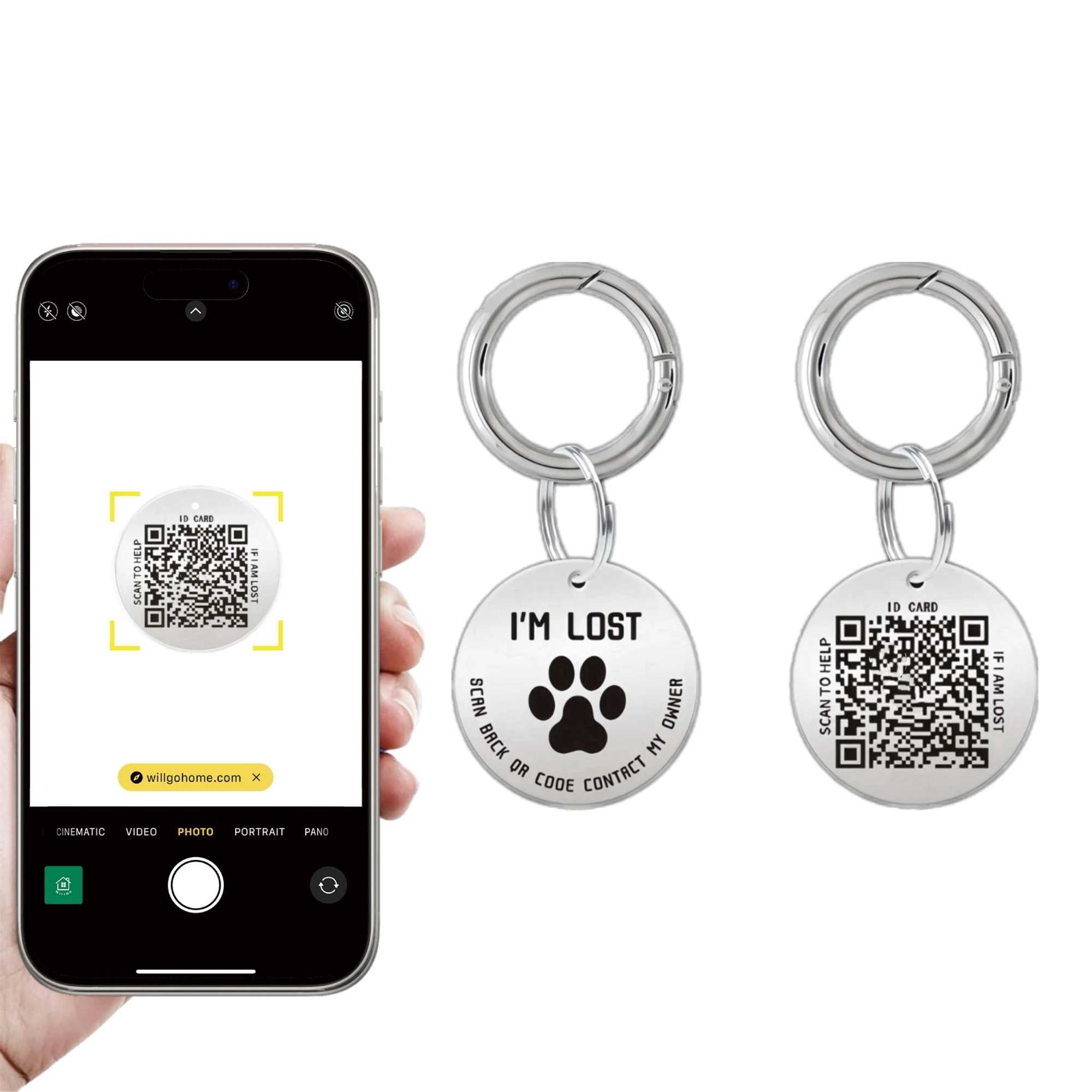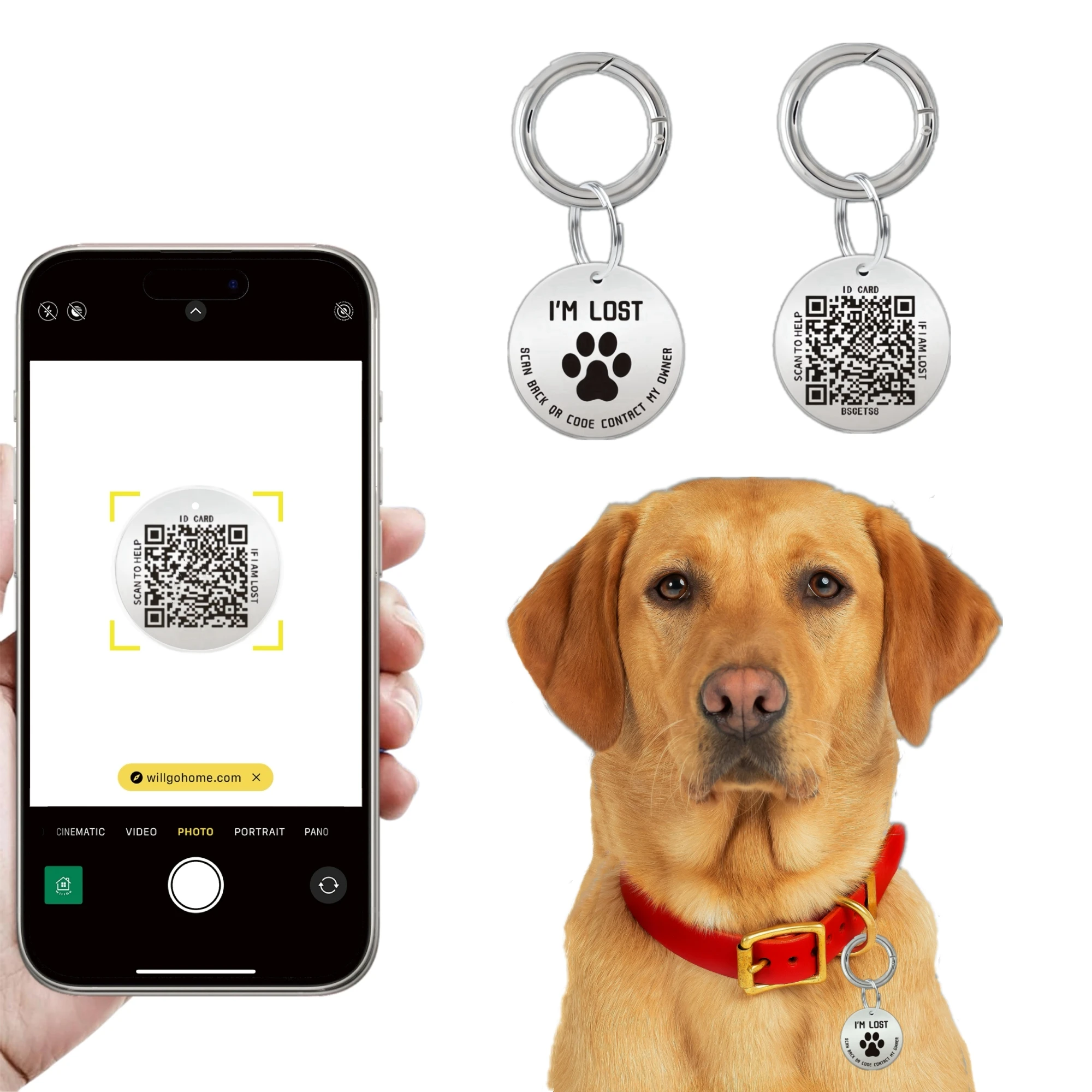 Pet ID Tags Scan QR Code Receive Instant Location Alert Email Smart Dog Tags Stainless Steel No App or Subscription