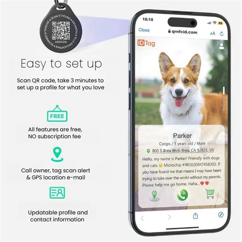 anti- lost, scan to see owner contact info, easy