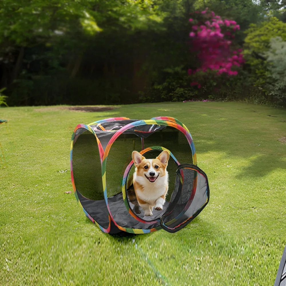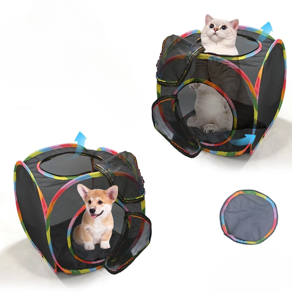 Square Foldable Outdoor Mesh Cat Tunnel Breathable Summer Kitty Tent with Play Tunnel Interactive Pet Play Cube Toys