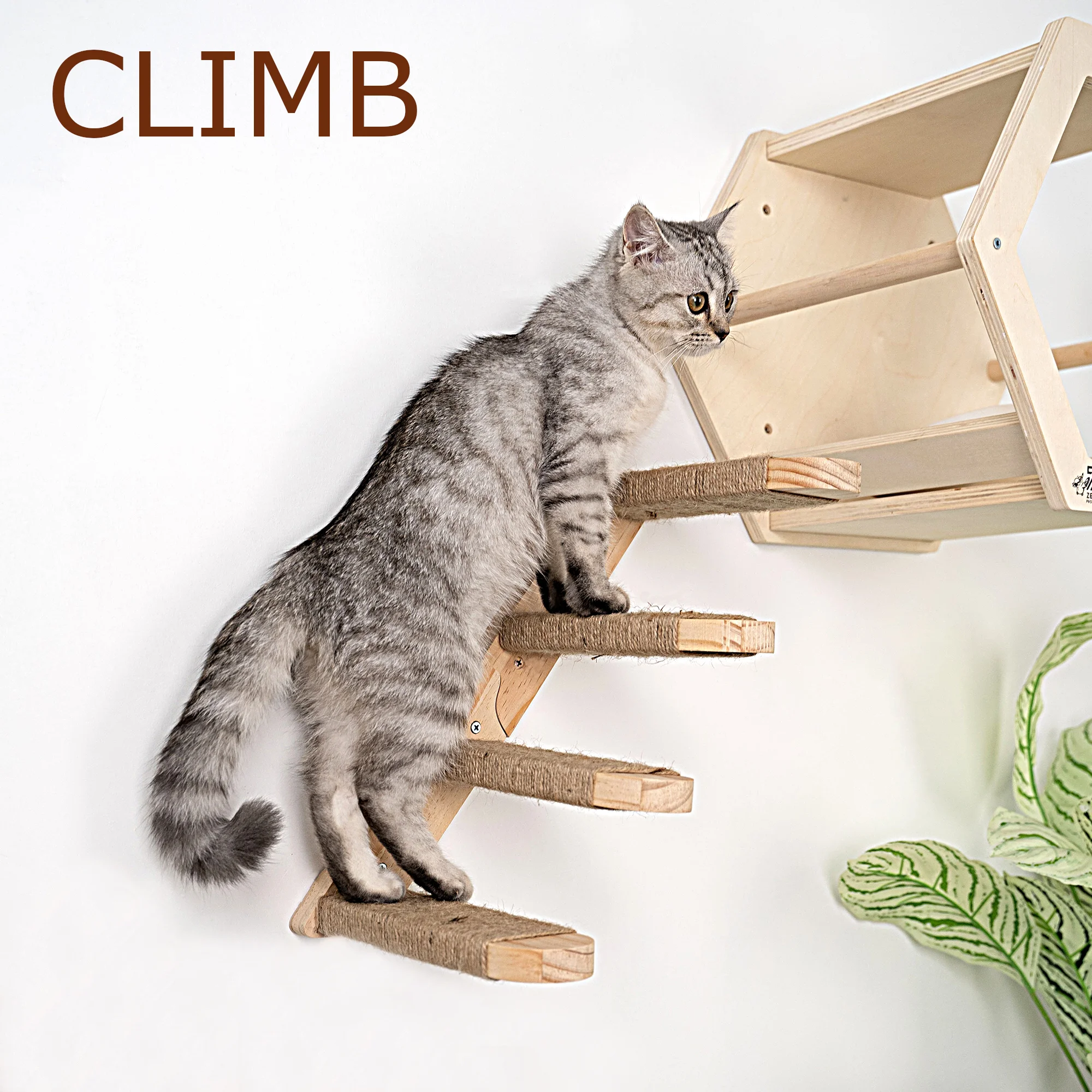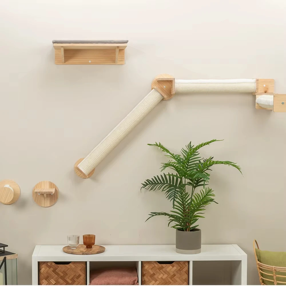 Wall-Mounted Cat Climbing Cat Trees Tower and Scratching Post Cats Hammock Jumping Platform with Pedals Wall Wooden Furniture